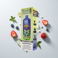 Nederlandse Groothandel RandM Tornado 9000 Puffs 850mAh 18mL Mesh Blauwe Bes Ijs RGB Display