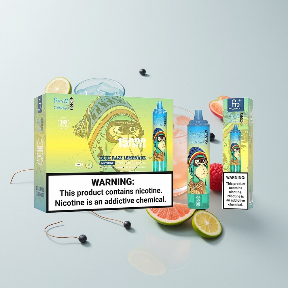 Nederlandse Groothandel RandM Fumot Tornado 15000 Blauwe Framboos Limonade Mesh LCD Type-C
