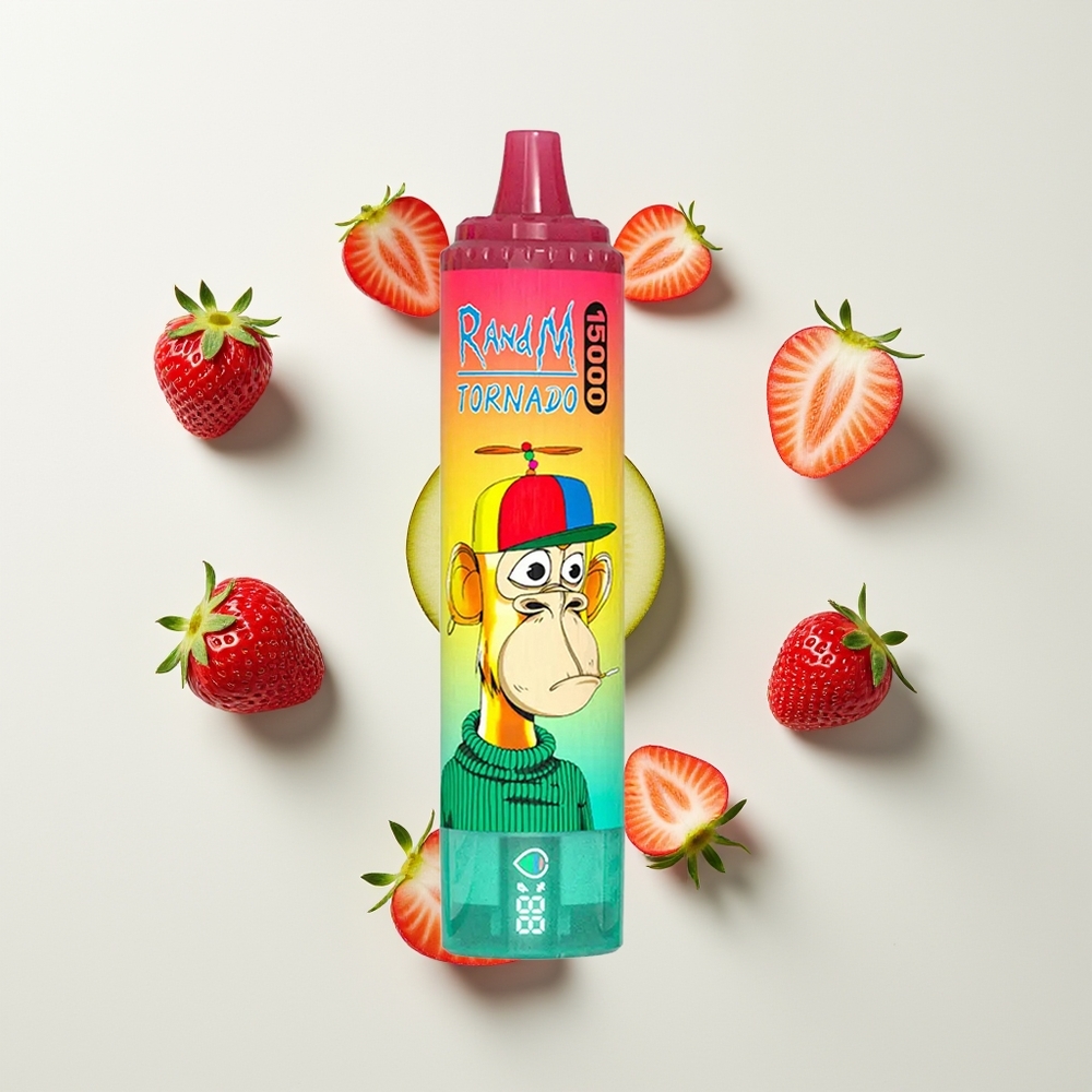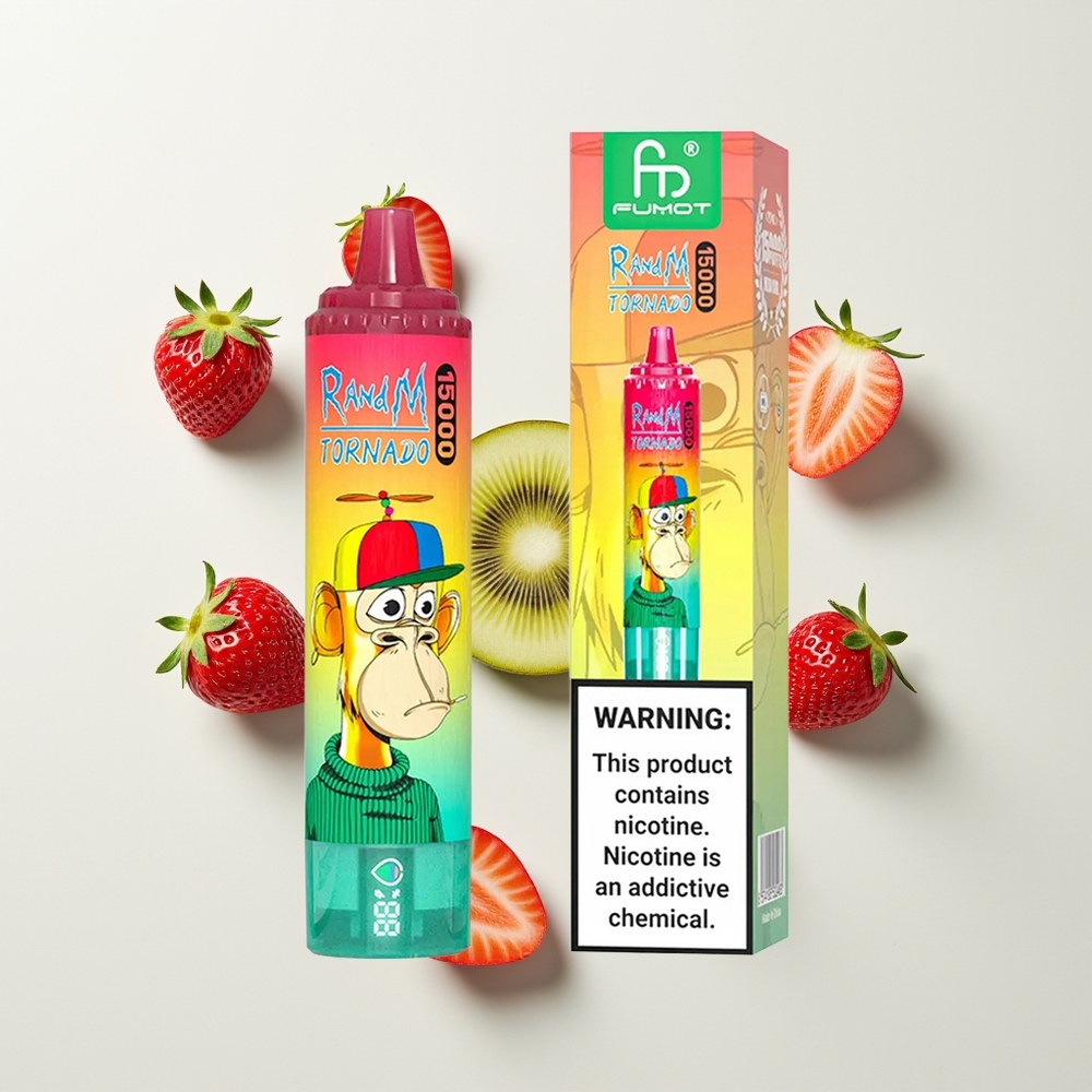 Nederlandse Groothandel RandM Fumot Tornado 15000 Puffs Aardbei Kiwi 25ml 850mAh Mesh LCD Type-C