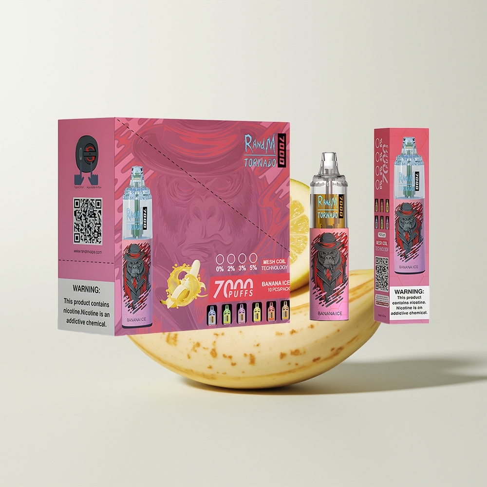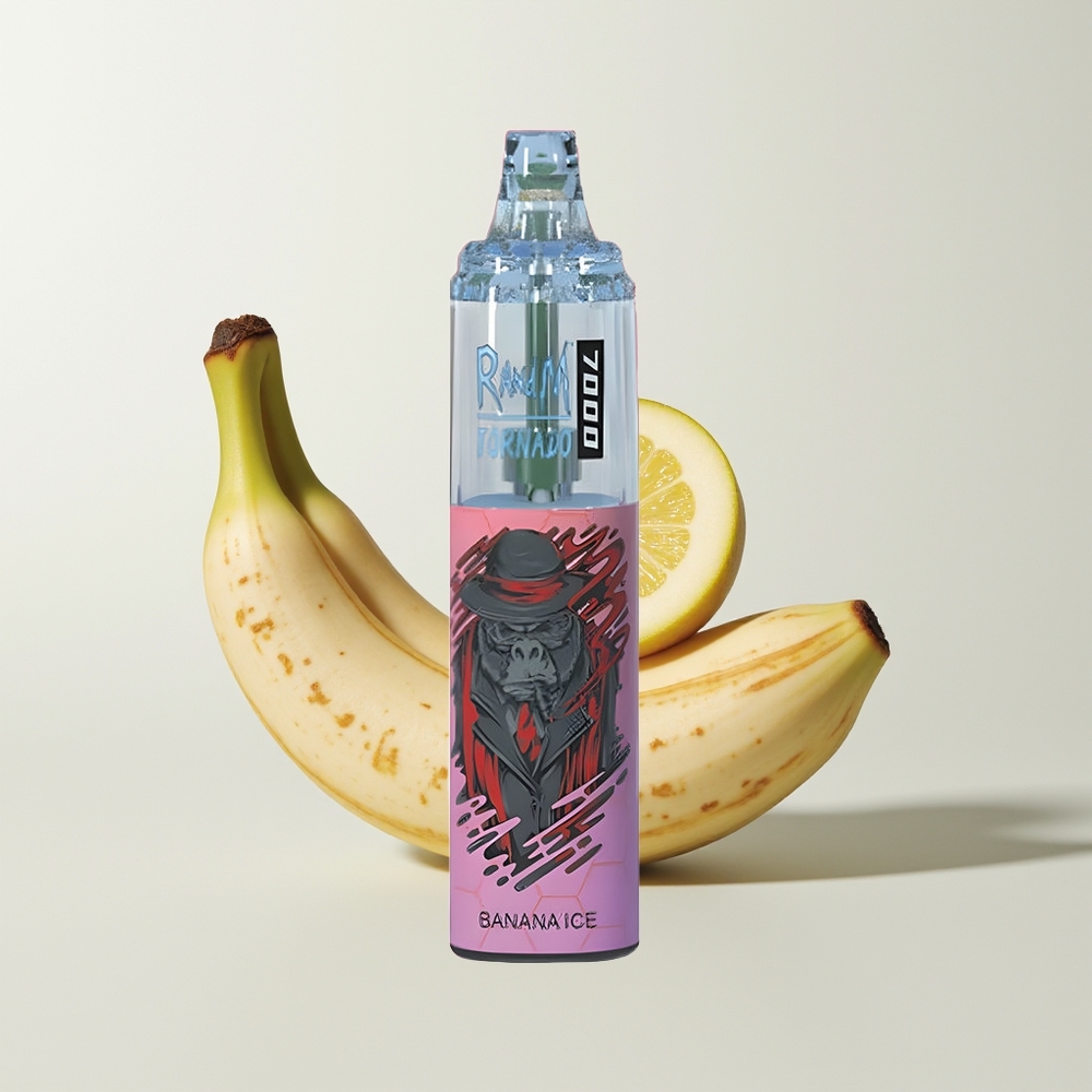 Nederlandse Groothandel RandM Fumot Tornado 7000 Banaan IJs 14ML 850MAH Mesh Coil Type-C RGB Air-Adjustable