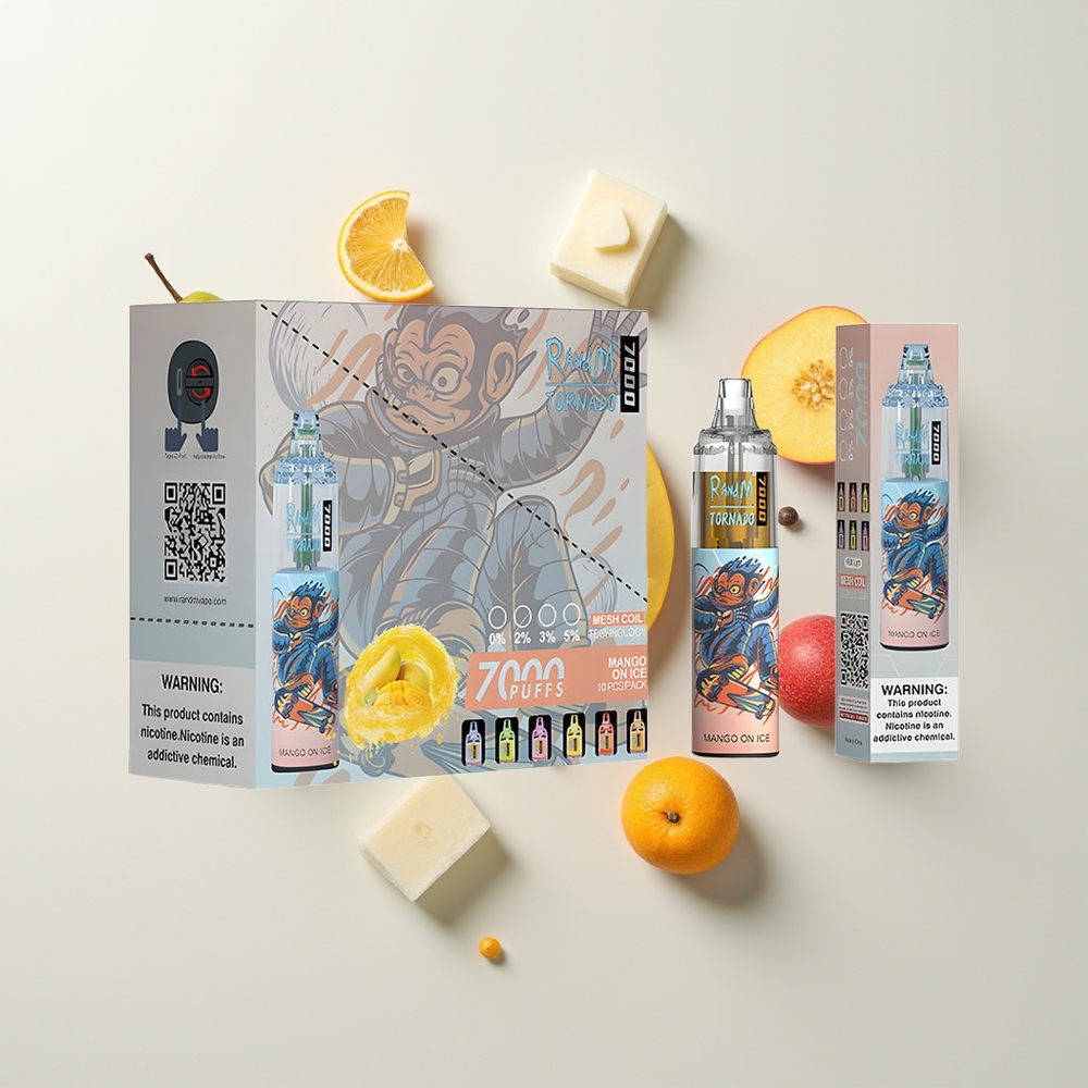 Nederlandse Groothandel RandM Fumot Tornado 7000 Mango Op IJs 14ML Mesh Coil Type-C RGB