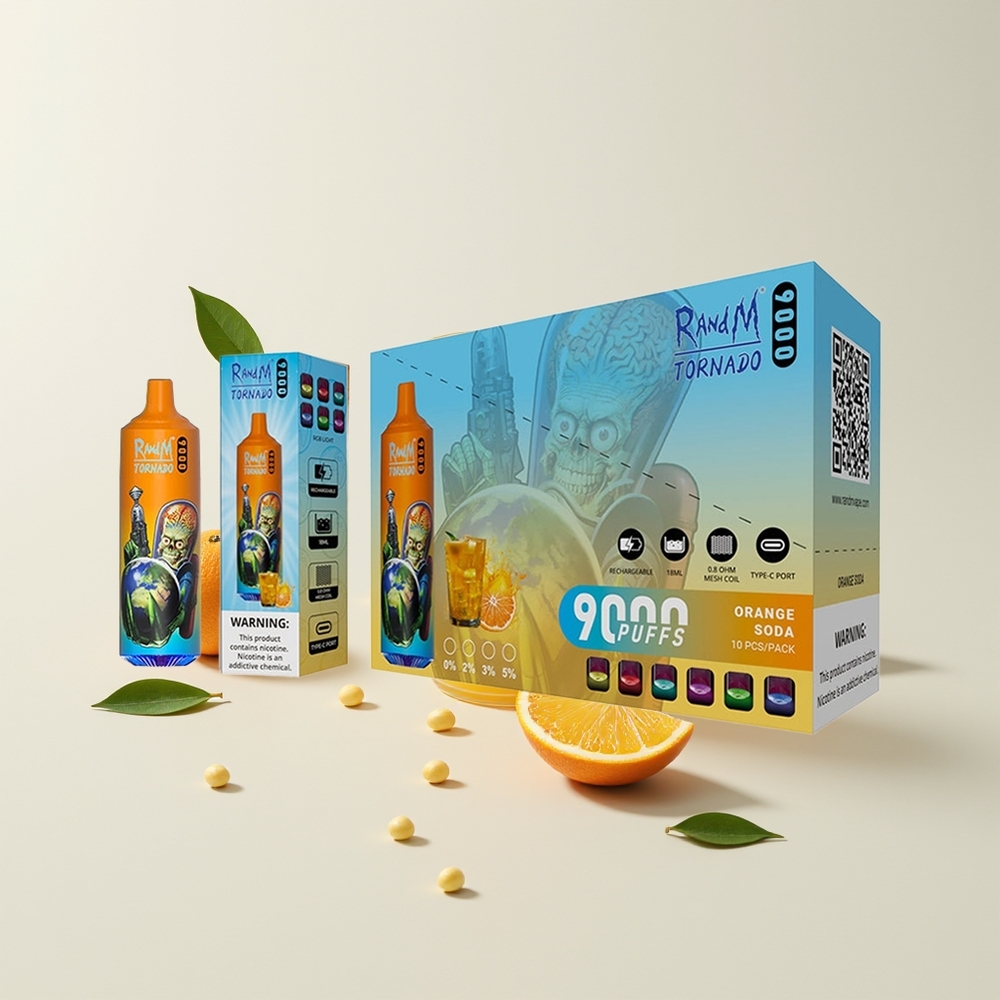 Nederlandse Groothandel RandM Tornado 9000 Orange Frisdrank 850mAh 18mL Mesh RGB 54 Smaken