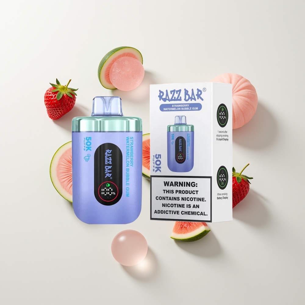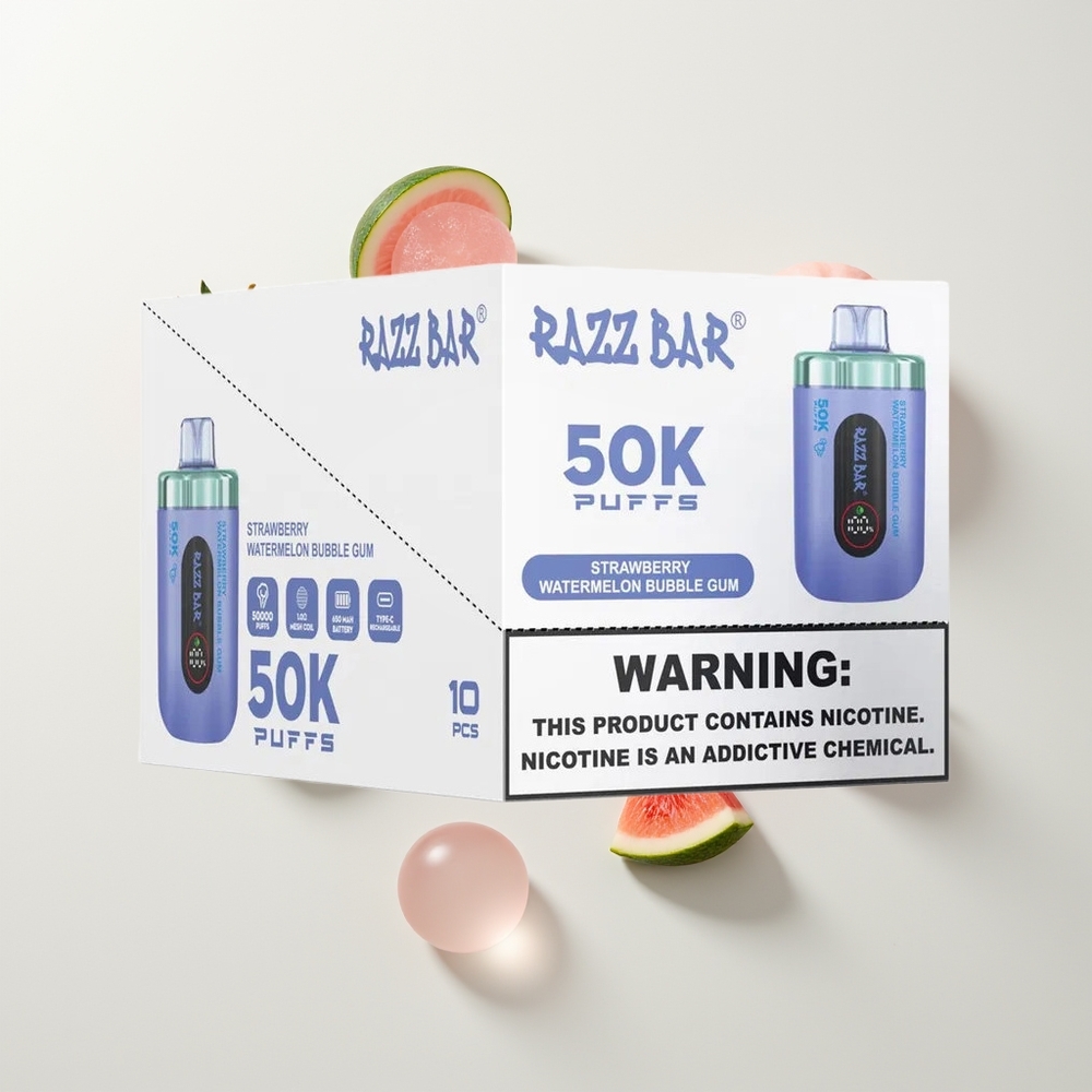 Nederlandse Groothandel Razz Bar 50K Puffs Wegwerp Vape Aardbei Watermeloen Bubble Gum Mesh Coil 650mAh