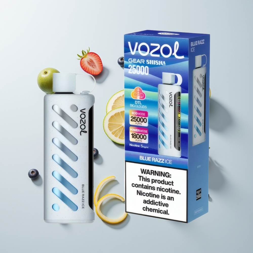 Nederlandse Groothandel VOZOL Gear Shisha 25000 Puffs Dual Mesh Blauwe Framboos IJs 5mg S.i.L.C Tech 1000mAh