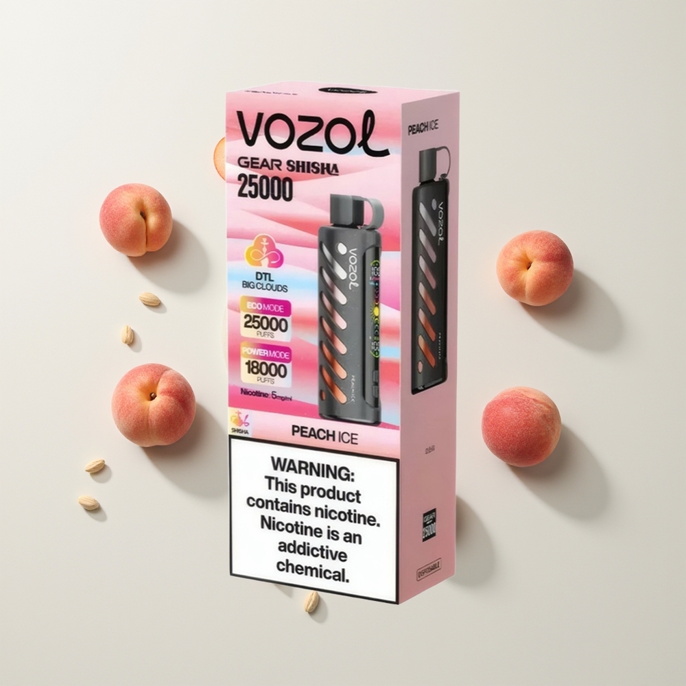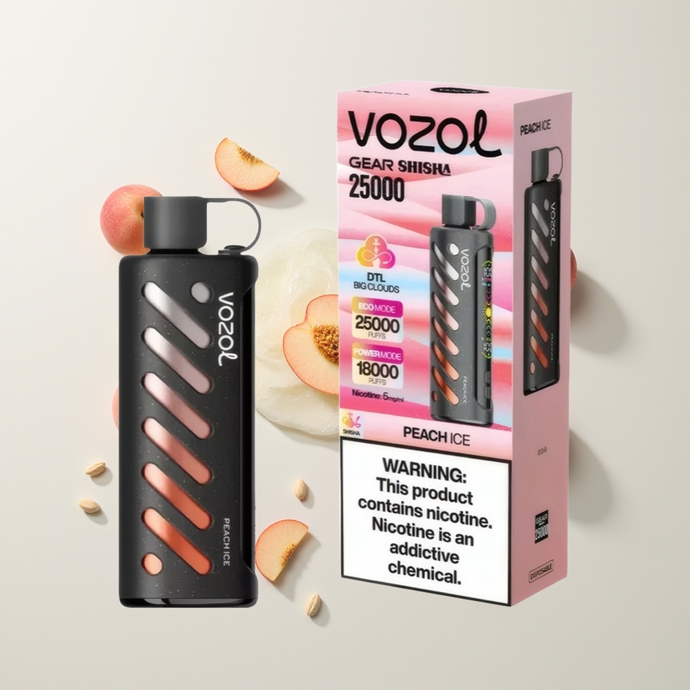 Nederlandse Groothandel VOZOL Gear Shisha 25000 Puffs Perzik IJs Dual Mesh 5mg/ml