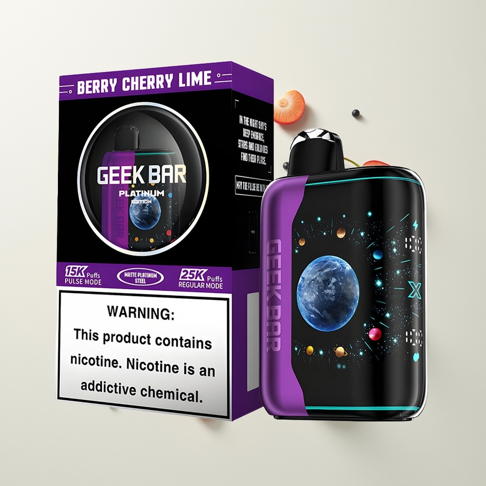 Nederlandse Groothandel GEEK BAR Platinum Edition 25000 Bes Bessen Kers Limoen Matte Staal Scherm Dual Mesh 20mL