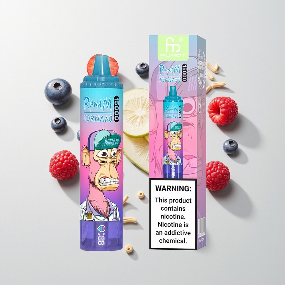 Nederlandse Groothandel RandM Fumot Tornado 15000 Puffs Blauwe Bes Framboos Mesh LCD Type-C
