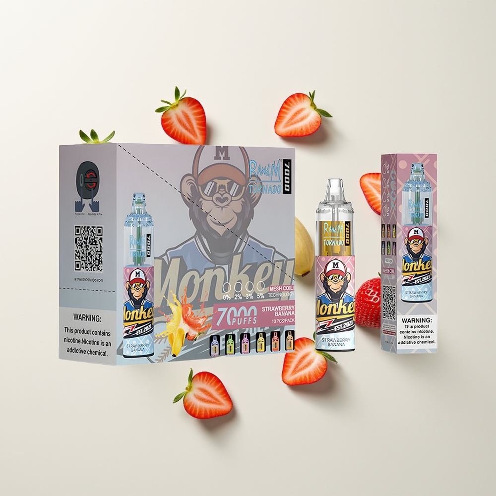 Nederlandse Groothandel RandM Fumot Tornado 7000 Aardbei Banaan 14ML Mesh Coil Type-C RGB