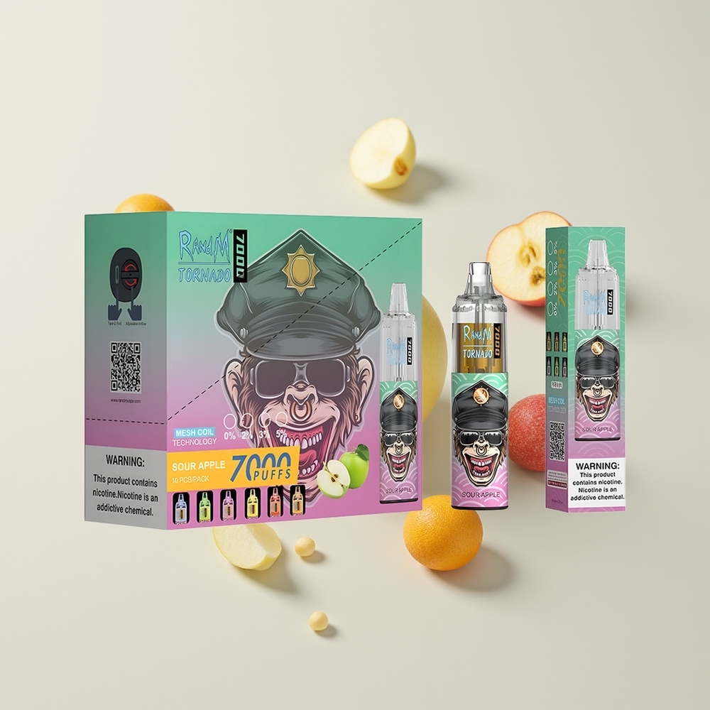 Nederlandse Groothandel RandM Fumot Tornado 7000 Zure Appel Mesh Coil Type-C RGB Luchtregeling