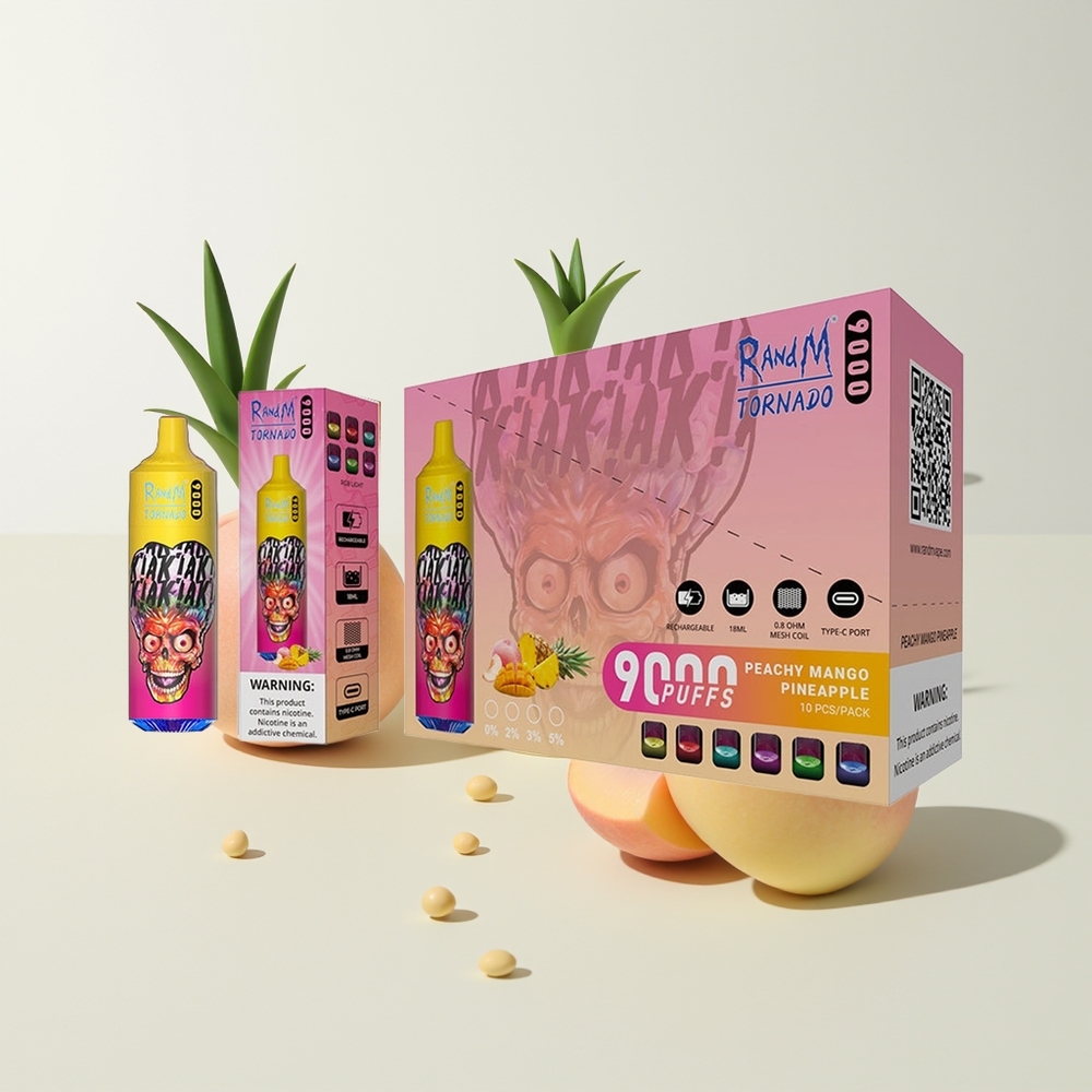 Nederlandse Groothandel RandM Tornado 9000 Puffs Perzik Mango Ananas 850mAh Mesh Coil RGB