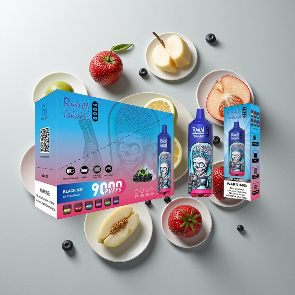 Nederlandse Groothandel RandM Tornado 9000 Puffs Zwart IJs Mesh Coil RGB Display 18mL