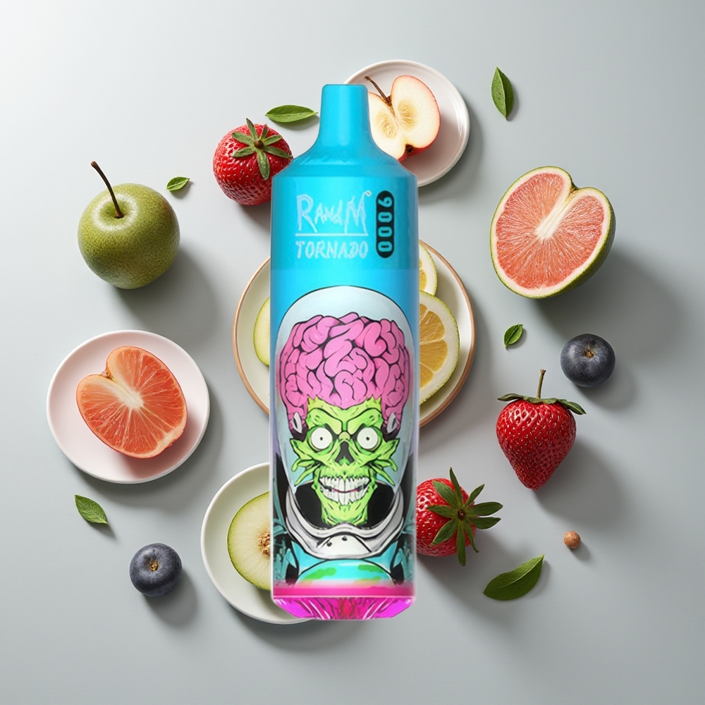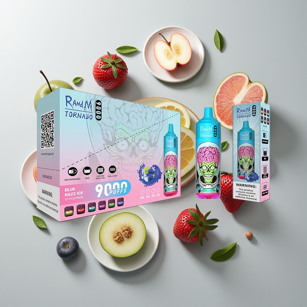 Nederlandse Groothandel RandM Tornado 9000 Puffs Zwarte Draak Ijs Mesh Coil RGB Display