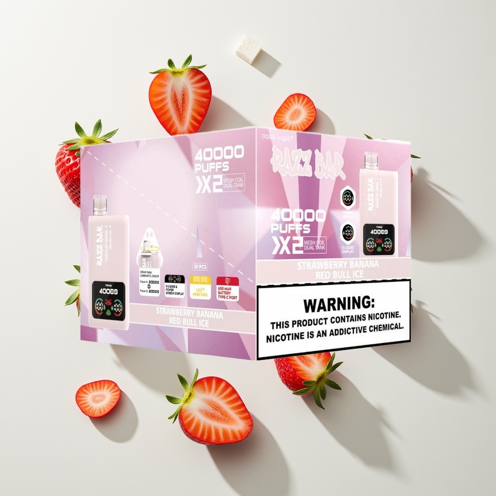 Nederlandse Groothandel Razz Bar 40000 Puffs Wegwerp Vape Aardbei Banaan – Red Bull IJs Scherm 1.0Ohm 2 Mesh 650Mah Type-C 2%5%