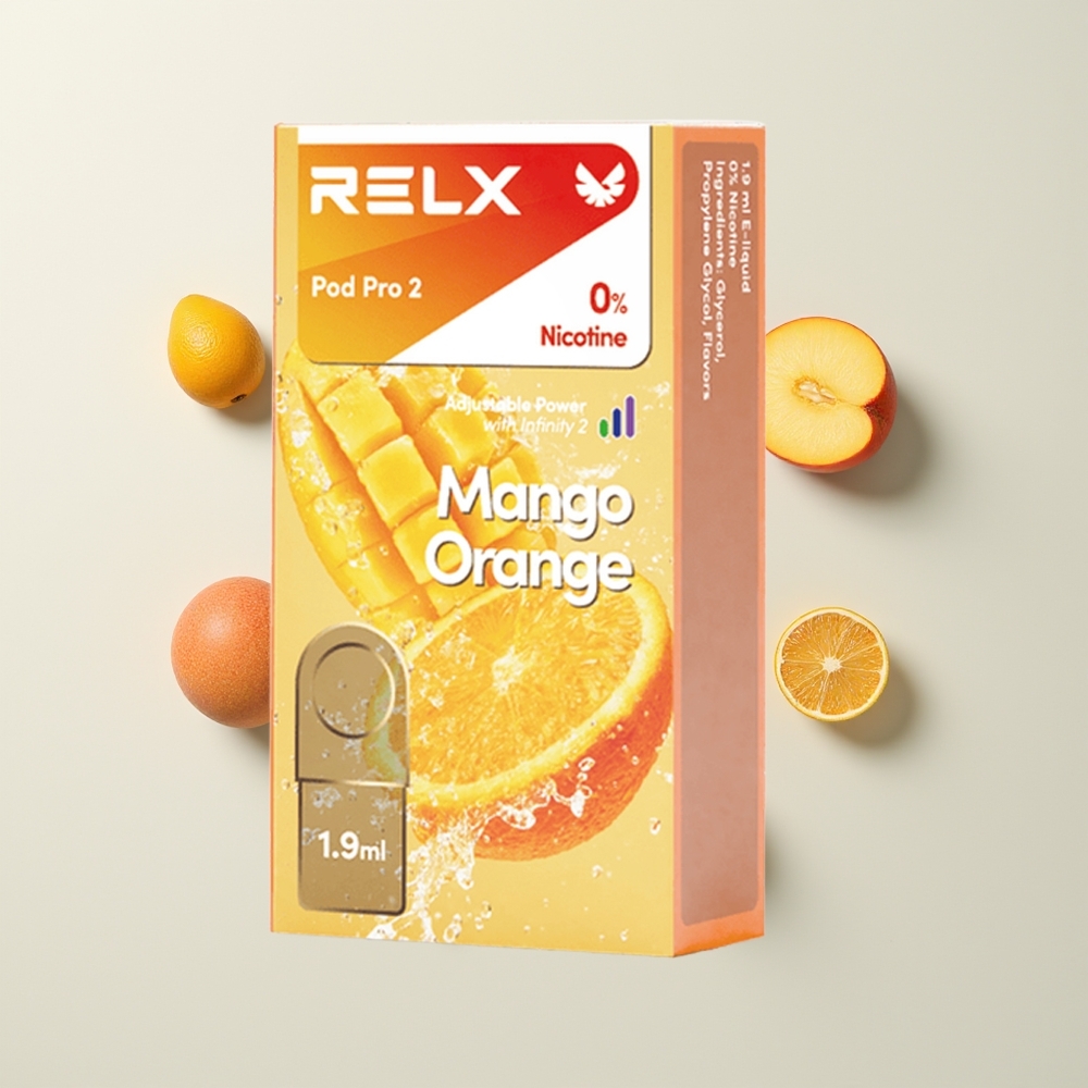 Nederlandse Groothandel RELX Pod Pro 2 600 puffs 1.9ml Mango Sinaasappel 3 Voltage Eco Smooth Boost 2pk